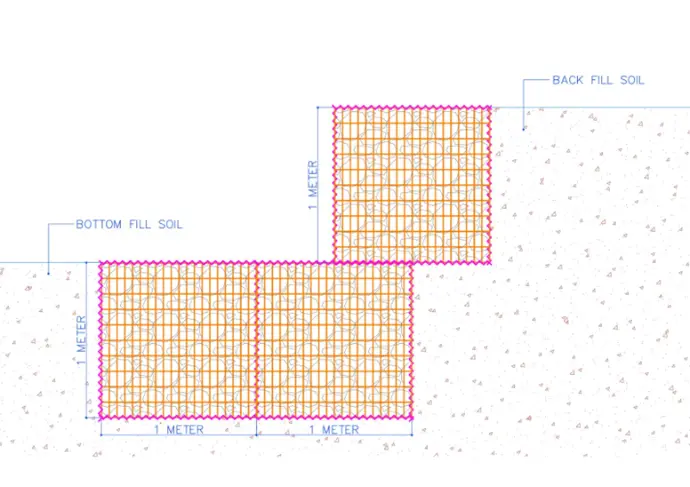 Reinforcement Mat Length: Using this method, the length of the reinforcement mat should be as long as or slightly longer than the wall